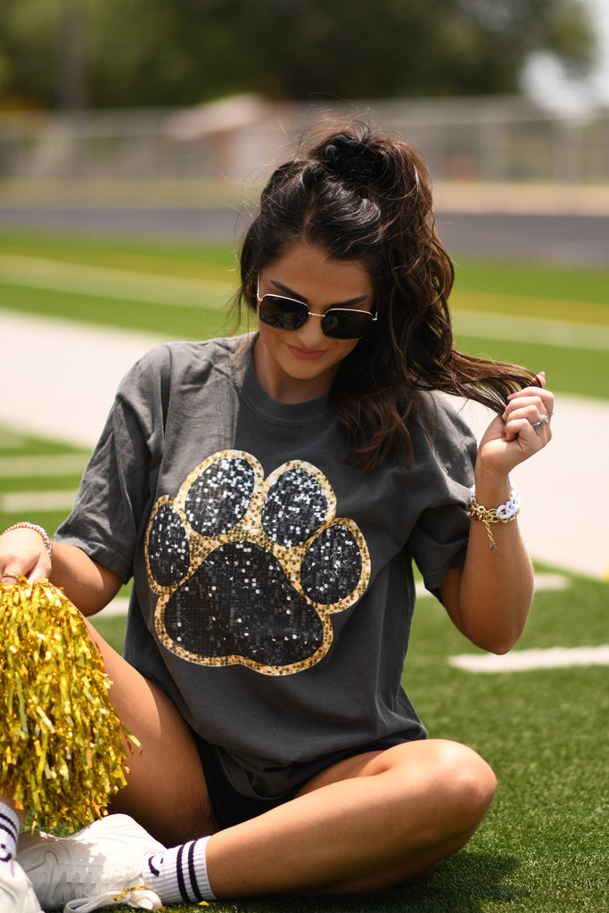 Black & Gold Faux Glitter Paw Print Tee
