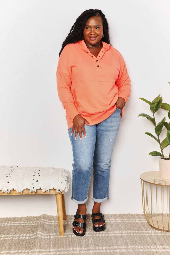 Double Take Quarter-Snap Dropped Shoulder Hoodie