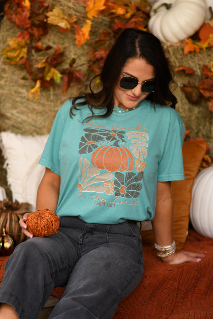 GIVE THANKS TO THE LORD PUMPKIN FLORALS TEE