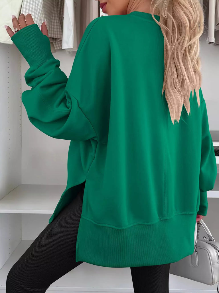 Side Slit Round Neck Long Sleeve Sweatshirt