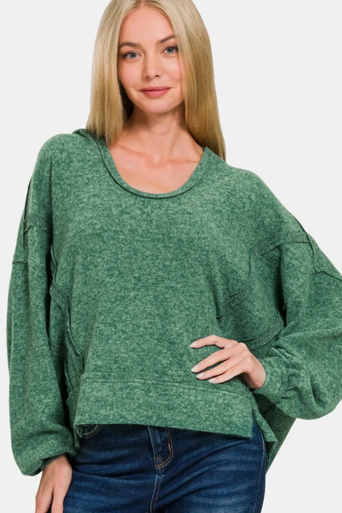 Zenana Brushed Hacci Exposed Seam Hoodie